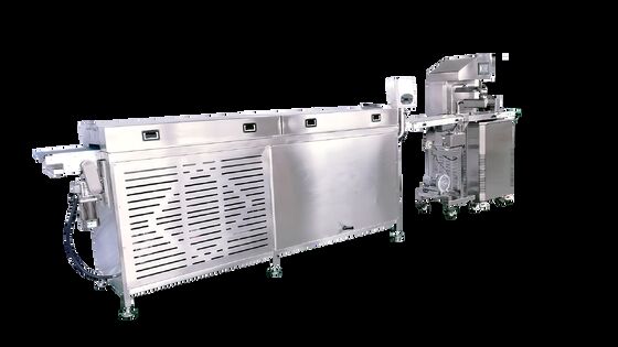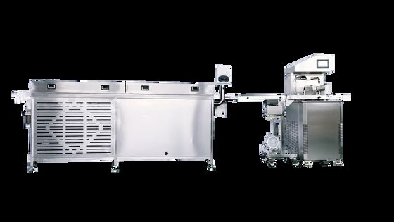 يعد نفق التبريد المدمج هو مفتاح الكفاءة. يوفر بيئة تبريد مستمرة ومضبوطة، مما يسمح لمنتجات الشوكولاتة المعدلة بالتصلب بشكل مثالي في غضون دقائق. يؤدي هذا إلى تبسيط إنتاجك، والقضاء على الحاجة إلى محطات منفصلة للتعديل والتصلب، وزيادة الإنتاج إلى أقصى حد في مساحة صغيرة.